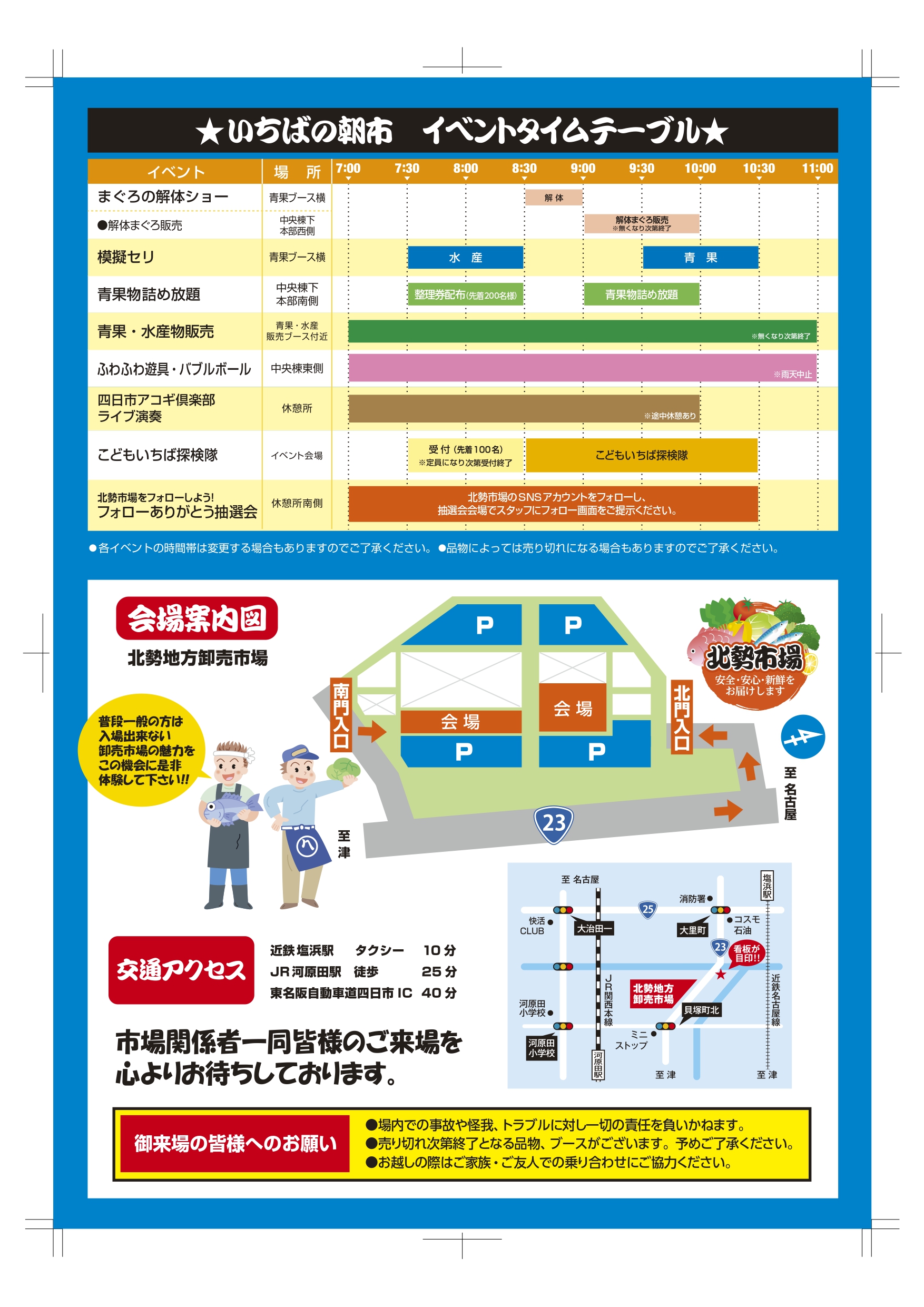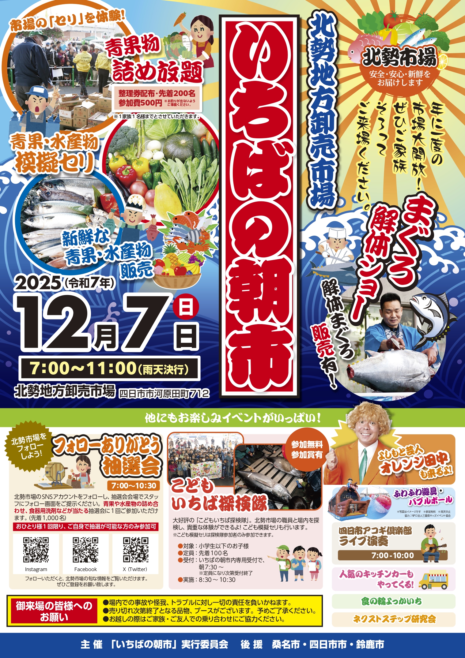 【告知】令和7年度 いちばの朝市 を2025年12月7日(日)7:00から開催します。当日は混雑が予想されますので、車でのお越しの場合は、ご家族・ご友人との乗り合わせにご協力ください。