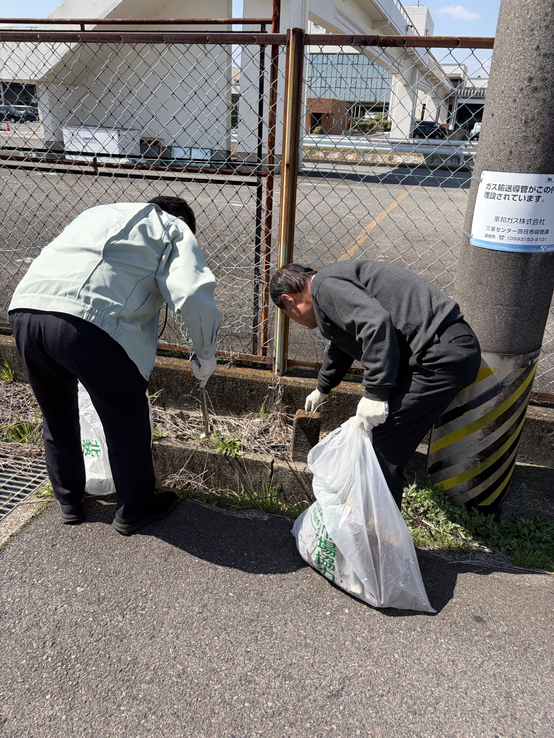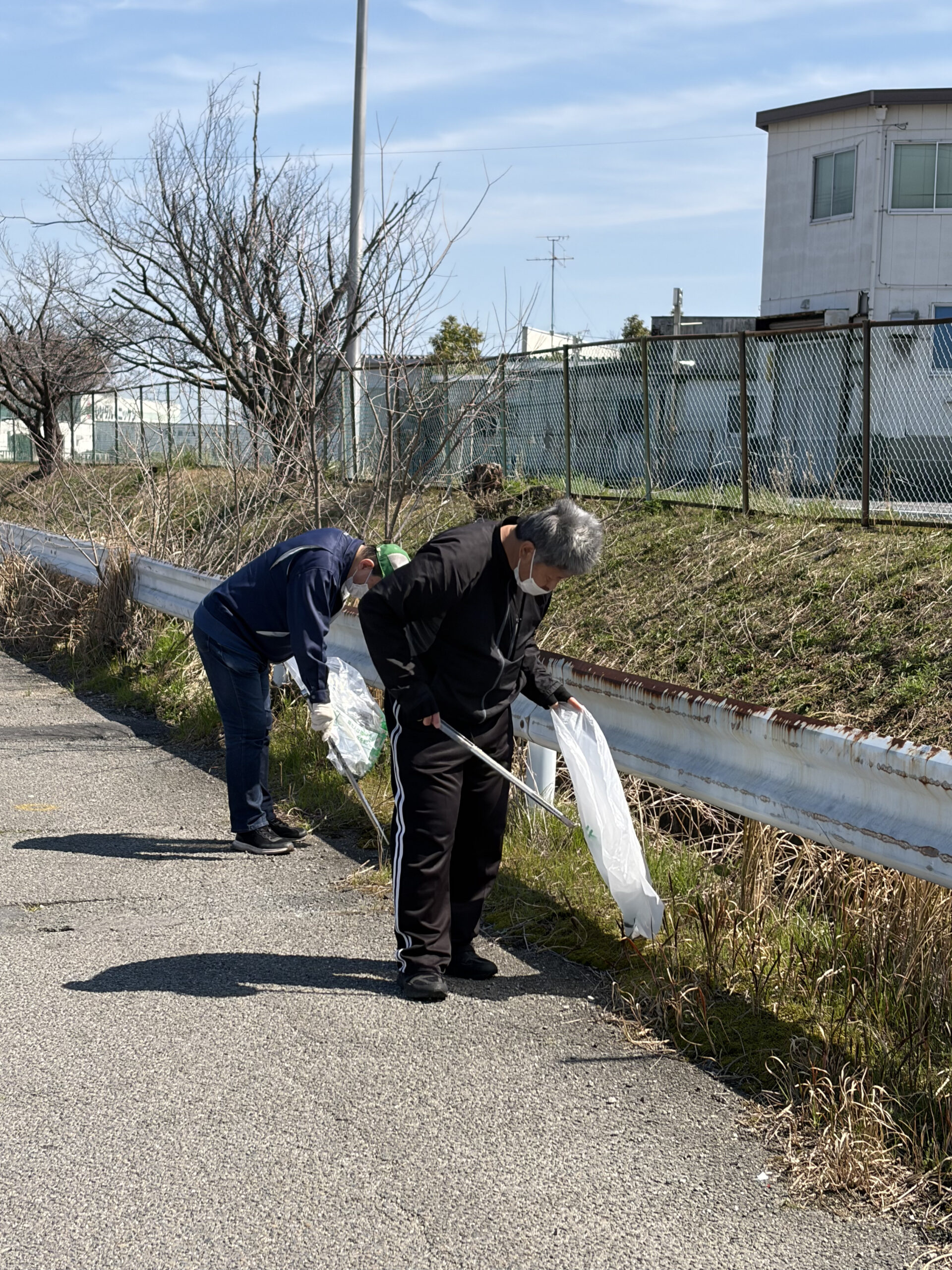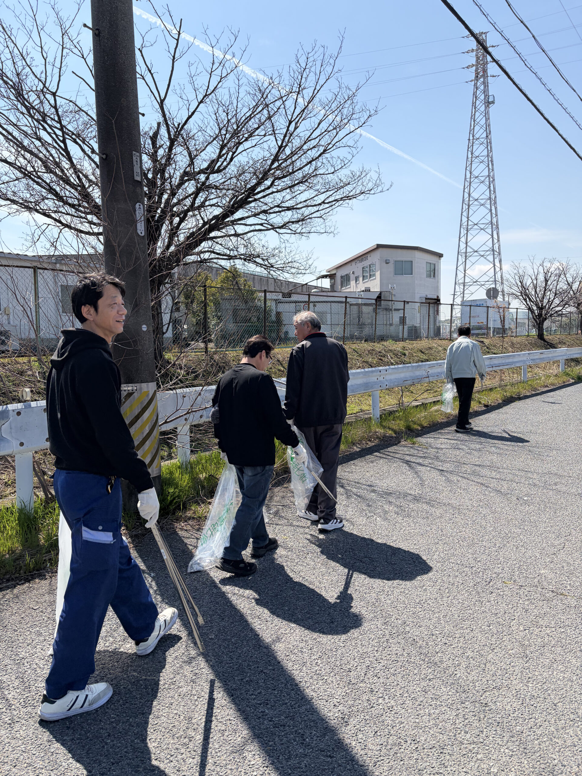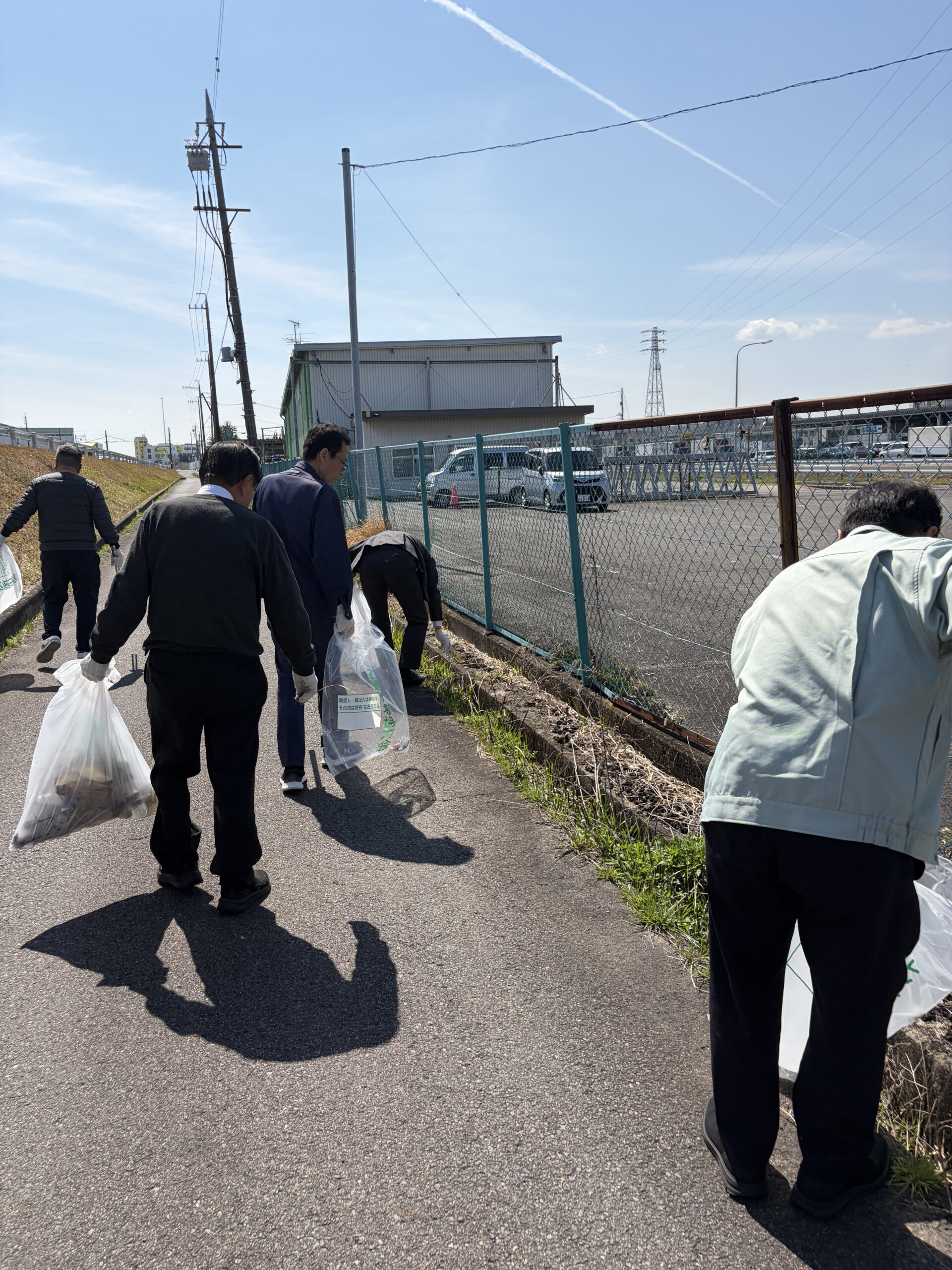 晴天で暖かく良い気候の中、みんなで北勢市場周辺道路の清掃を行ない、空き缶、ペットボトル、弁当ごみなどを回収しました。